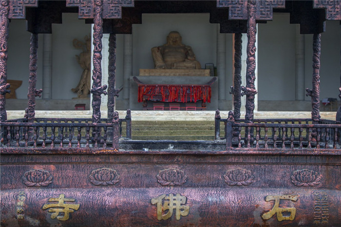 平坦的狮子山山脊北侧,竟被刀砍斧劈了一样,绝壁峭然,一座宛如空中庙宇悬于梯阶之上。“石刹更兼石山拥,佛殿巧筑似神工”,这是镌刻在石佛寺城隍峰摩崖上的诗句,它生动地点出了石佛寺的绝妙景色。