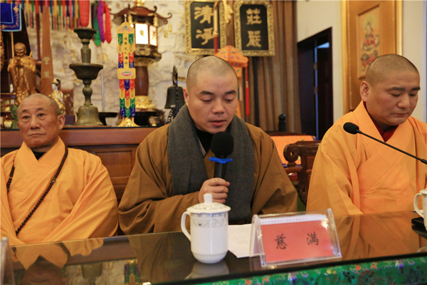 湖州市委统战部副部长、民宗局局长沈火江在颁证仪式上发表讲话,各县区宗教工作部门和佛教协会要以佛教教职人员证书颁发工作为契机,进一步加强教职人员队伍建设和管理。全市佛教教职人员也要以此为契机,始终如一地坚持爱国爱教的传统,牢记以戒为师的付嘱,不忘自觉觉他的初心。
