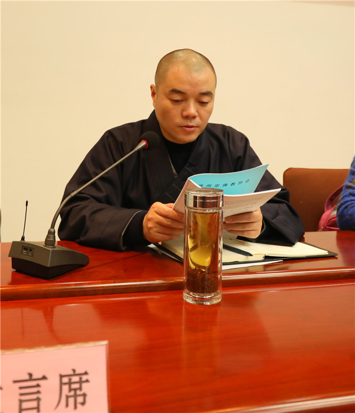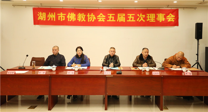 会议由第一副会长界隆法师主持。会议表决通过增补大憨法师为湖州佛教协会第五届理事会理事、常务理事、副秘书长,证道法师为常务理事,真圆法师为副秘书长。会议上市佛教协会秘书长及以上成员分别作述职报告。沈林华处长对做好春节期间的安全稳定工作进行了部署,并强调要坚持做好“文明敬香”活动。