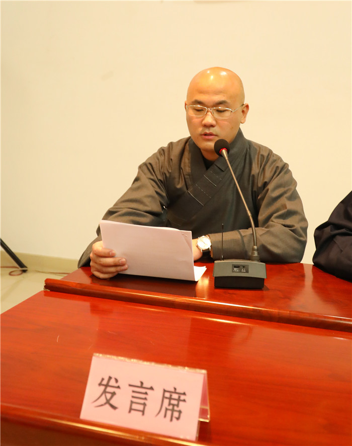 会长慈满法师作2016年度工作报告,并作述职