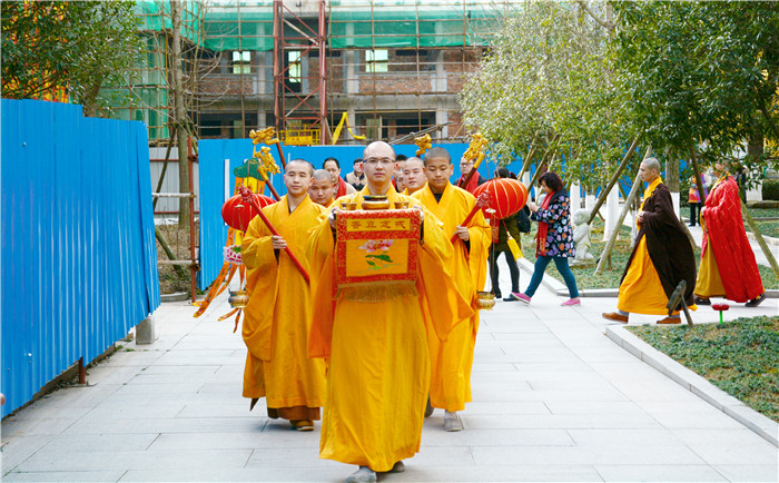 2017年1月15日上午吉时,长兴寿圣寺隆重举行【圆成弘法综合楼】圆顶成梁法会典礼。来自上海、宁波、杭州、温州、湖州、日本及长兴本地的500多护法居士共沾三宝慈恩,共襄盛举。参加盛会的领导嘉宾有:水口乡党委书记沈庄伟先生、长兴县委统战部副部长 长兴县民宗局局长王春强先生、长兴县民宗局副局长王琴女士和水口乡党委统战委员许晓明先生等。
